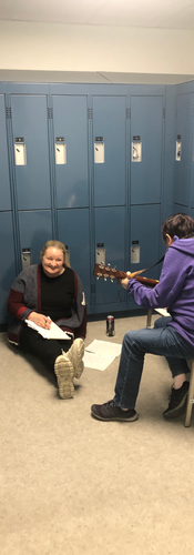 The first part of the class covered "Now what" - to get student thinking what they want to do next with their music, goal setting examples and how they are going to get there. Then it was group co-write time and the group came back with some great ideas utilizing the words "Night, Pepsi & Hair" - how these three random words can be used very differently!